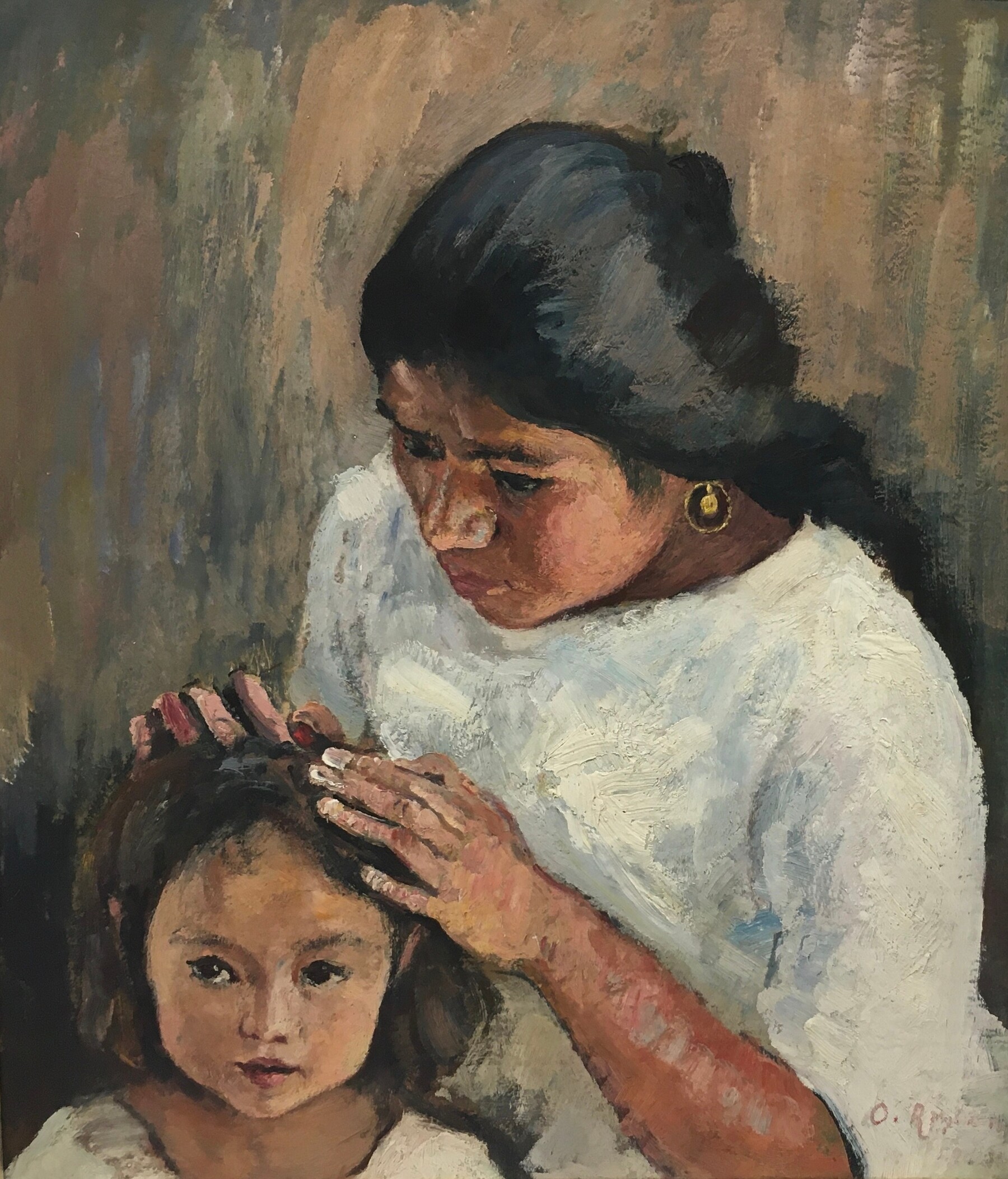 Au Mexique, elle passe des semaines seule dans les montagnes, dont l’extrême beauté la sauve régulièrement de doutes existentiels qu’elle confie à Hedwig Woermann dans ses lettres. Elle se demande si elle ne manque pas sa vie, si elle arrivera à tenir les promesses si claires de l’enfance. Elle peint ce qu’elle voit dehors, dans la rue, dans des couleurs de plus en plus vives ; elle fait de nombreux portraits de Bodzio et des personnes qu’elle rencontre. Le motif de la mère à l’enfant, si souvent peint par Paula Modersohn-Becker, est récurrent chez elle aussi. Les trois autoportraits placés au centre de l’exposition d’Ottilie Reylaender « Libre et indépendante » à Worpswede sont flanqués de toiles représentant des femmes avec leurs petits : une mère allaitant, entièrement concentrée sur son nourrisson, peinte autour de 1900 ; une femme mexicaine, le regard perdu au loin, berçant et veillant un enfant endormi dans son hamac, emmitouflé dans une couverture à carreaux (1927) ; une autre femme à la chevelure d’un noir brillant, vêtue de blanc, en train d’épouiller la tête d’une petite fille qui, patiente, nous regarde à travers celle qui la peint (1926). Ces scènes de tendresse sont aussi des témoignages d’une temporalité propre à la maternité et propice au temps de pose : le temps de la nourriture, du sommeil, des soins corporels qui requièrent une présence immobile et attentive, rythmée par les besoins de l’enfant.